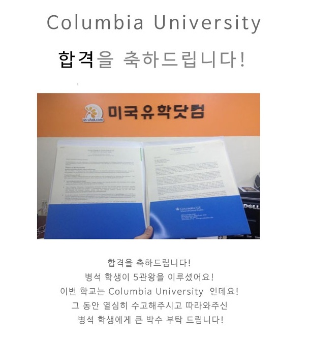 [합격장] 병석학생 Columbia 합격을 축하드립니다!